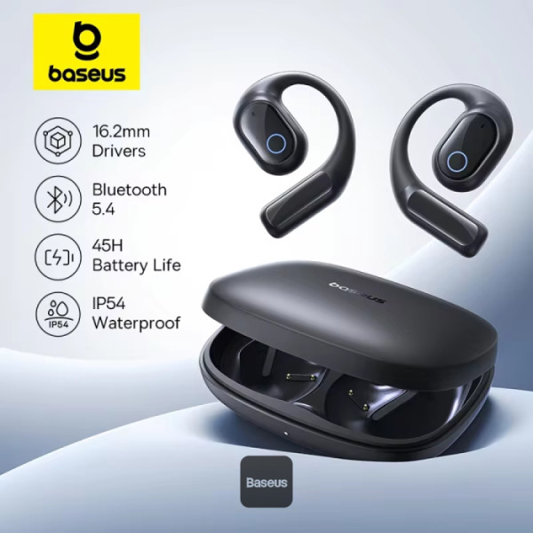 BASEUS ELI 10I FIT OPER -EAR TWS - توصيل الهواء ، BT 5.4 ، بطارية 45 ساعة ، IP54 مقاومة للماء ، خطافات أذن رياضية للركض ، صالة الألعاب الرياضية وركوب الدراجات